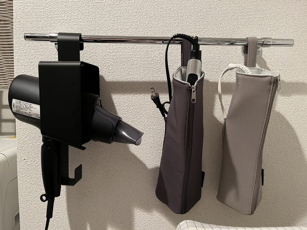 ドライヤーホルダーもいろいろ探したのですが、タオルハンガーの取り出しやすい位置に引っ掛けられるもので、見た目のシンプルさと、パッと取り出せる便利さを考えてこちらを選びました。